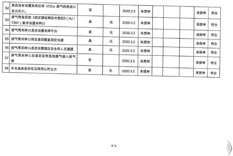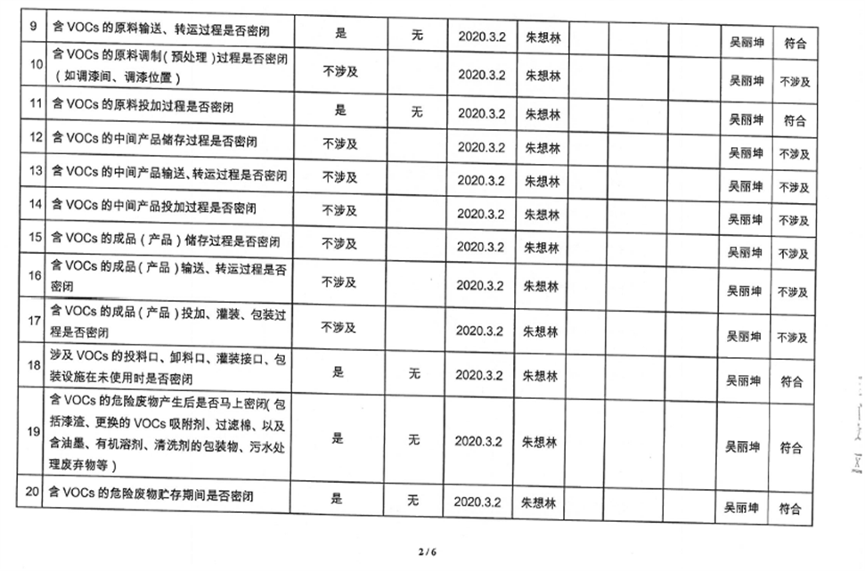 廈門市揮發性有機物污染防治企業自查表(2020年第二季度)