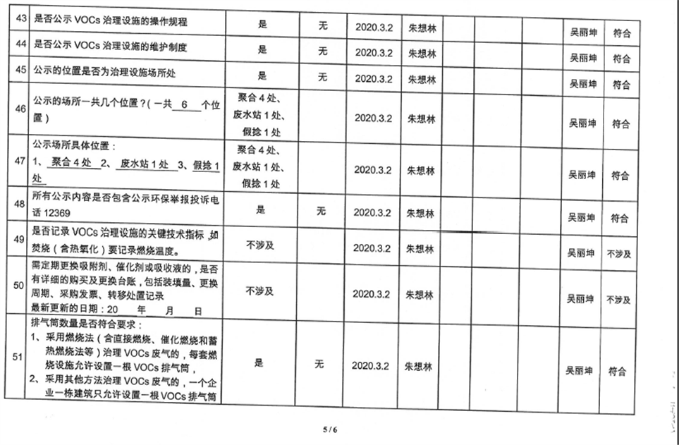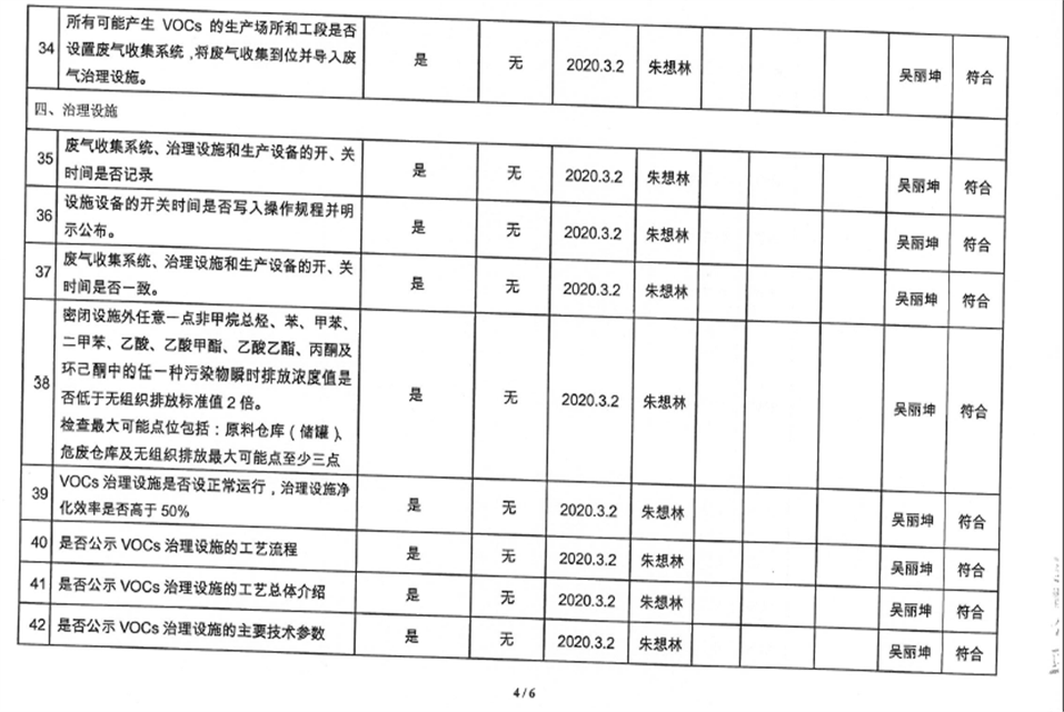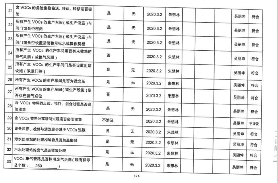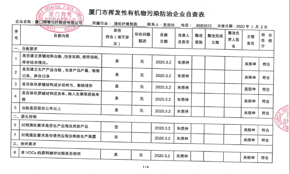 廈門市揮發性有機物污染防治企業自查表(2020年第一季度)